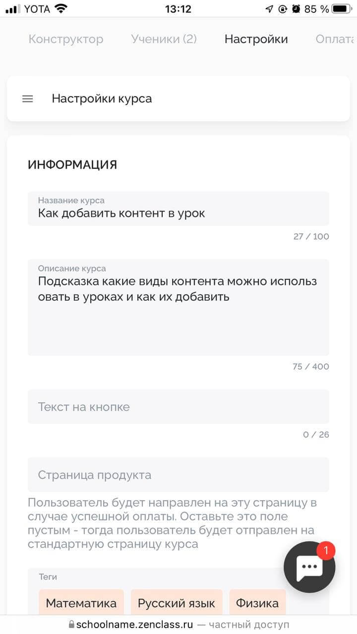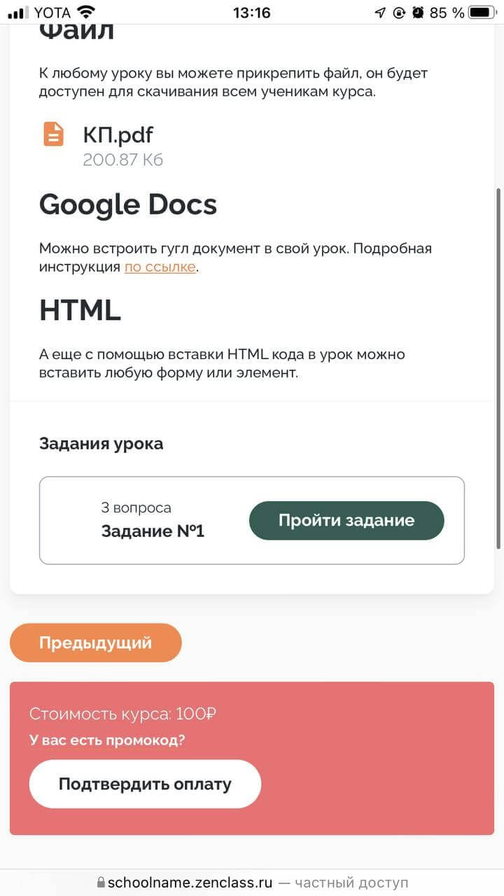 В настройках курса на вкладке «Оплата» можно указать собственное название для платёжного метода. Оно появится у учеников при выборе способа оплаты.
